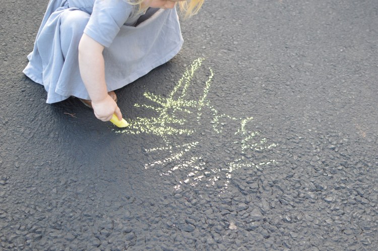 The way you notice your two year old drawing a sun on the driveway.
