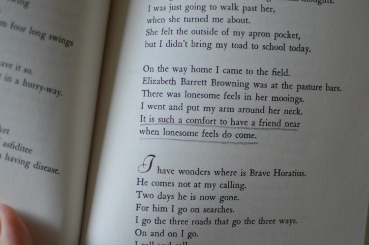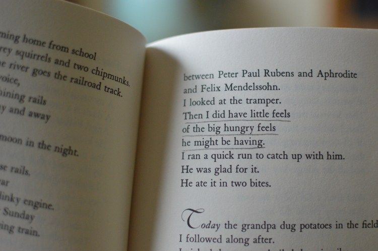 This entire book is the written words of an orphaned six year old girl born a century ago who has a deep connection with her world around her. Her personal diary or “prints” as she calls them, were meticulously pieced together after they were torn apart and put in a poetry like format (and edited spelling) for us all to enjoy and read with ease.